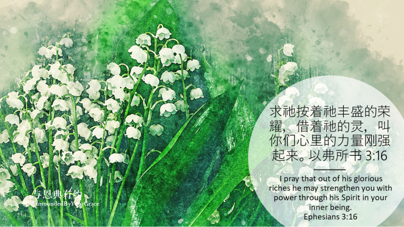 心灵强健, 以弗所书 以弗所书 3:16 Date: 12/26/2020Author: Surrounded By Your Grace 0 Comments 求祂按着祂丰盛的荣耀,借着祂的灵,叫你们心里的力量刚强起来。以弗所书 3:16 I pray that out of his glorious riches he may strengthen you with power through his Spirit in your inner being.Ephesians 3:16 Share this: Share on X (Opens in new window) X Share on Facebook (Opens in new window) Facebook Share on Pinterest (Opens in new window) Pinterest Share on WhatsApp (Opens in new window) WhatsApp Share on Telegram (Opens in new window) Telegram Like Loading... Related