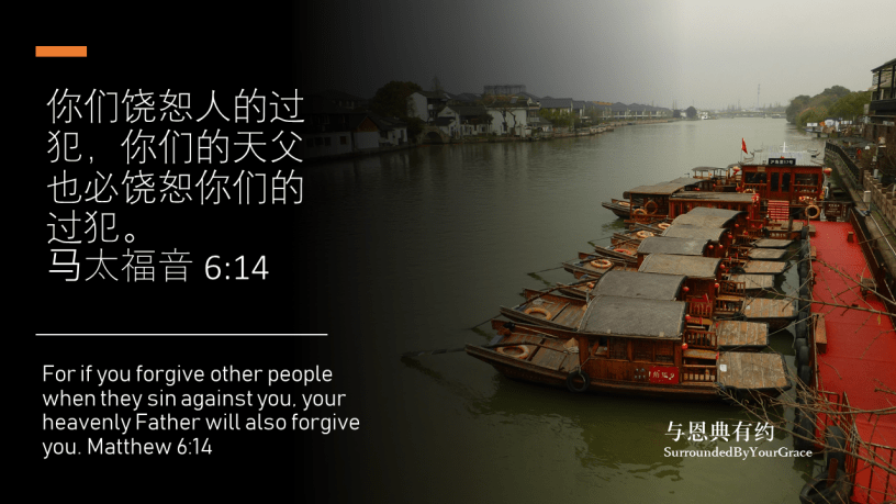 饶恕, 马太福音 马太福音 6:14 Date: 12/28/2020Author: Surrounded By Your Grace 0 Comments 你们饶恕人的过犯,你们的天父也必饶恕你们的过犯。马太福音 6:14 For if you forgive other people when they sin against you, your heavenly Father will also forgive you. Matthew 6:14 Share this: Share on X (Opens in new window) X Share on Facebook (Opens in new window) Facebook Share on Pinterest (Opens in new window) Pinterest Share on WhatsApp (Opens in new window) WhatsApp Share on Telegram (Opens in new window) Telegram Like Loading... Related