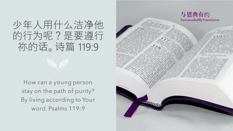 行为, 诗篇 诗篇 119:9 Date: 01/24/2021Author: Surrounded By Your Grace 少年人用什么洁净他的行为呢?是要遵行祢的话。诗篇 119:9 How can a young person stay on the path of purity? By living according to Your word. Psalms 119:9 主啊,求祢帮助每一个青年人,叫他们不单愿意寻求祢,更加愿意学习祢的话语,将祢的话语刻在心板上,不断思想,能够作祢喜悦的决定,一生行在正路中。感谢主,奉主耶稣基督胜名求,阿们。 Share this: Share on X (Opens in new window) X Share on Facebook (Opens in new window) Facebook Share on Pinterest (Opens in new window) Pinterest Share on WhatsApp (Opens in new window) WhatsApp Share on Telegram (Opens in new window) Telegram Like Loading... Related