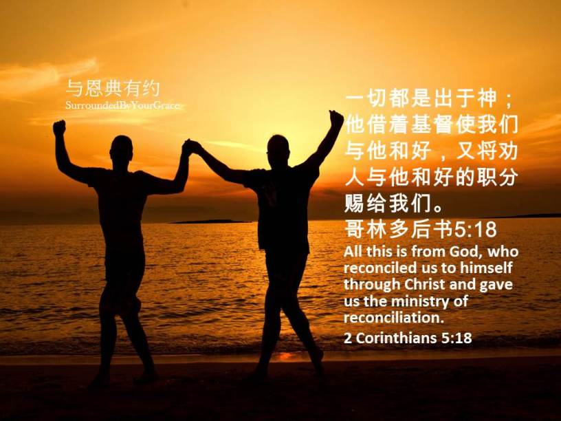 一切都是出于神;他借着基督使我们与他和好,又将劝人与他和好的职分赐给我们。哥林多后书5:18