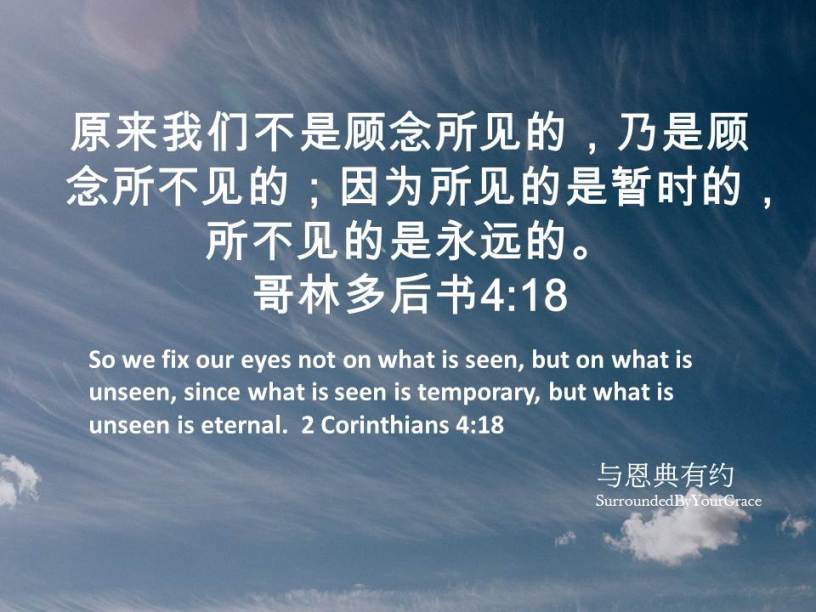原来我们不是顾念所见的,乃是顾念所不见的;因为所见的是暂时的,所不见的是永远的。哥林多后书4:18