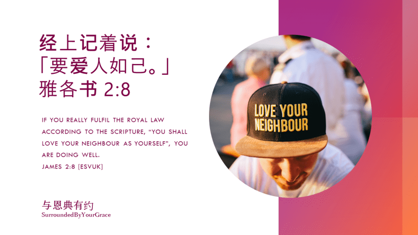 If you really fulfil the royal law according to the Scripture, “You shall love your neighbour as yourself”, you are doing well. James 2:8 [ESVUK]