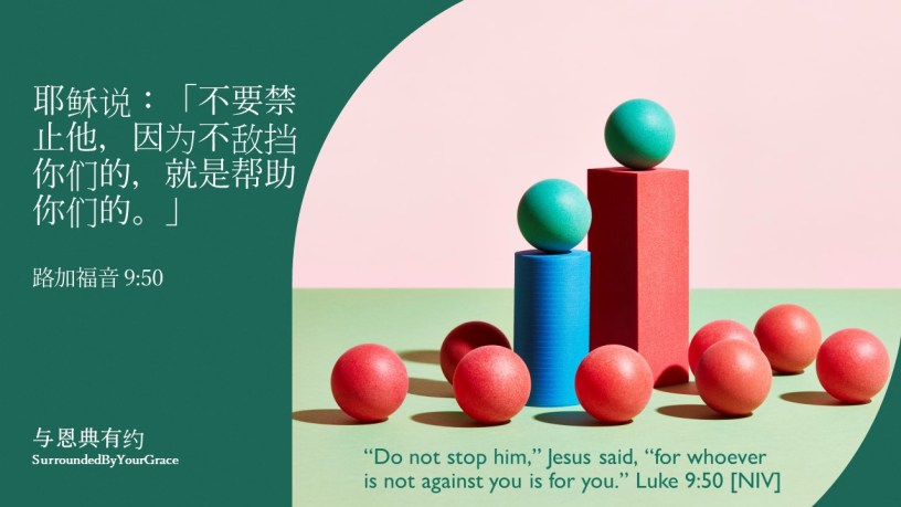 行为, 路加福音, 帮助 路加福音 9:50 Date: 12/25/2021Author: tingfong123 耶稣说:「不要禁止他,因为不敌挡你们的,就是帮助你们的。」路加福音 9:50 “Do not stop him,” Jesus said, “for whoever is not against you is for you.” Luke 9:50 [NIV] 亲爱主,在我们的环境中,有帮助我们的,也有不敌挡我们的。求主赐福他们,因为不敌挡我们的,其实就是帮助我们,求主同样为他们预备同行者,祝福他们手所作的工。感谢主,奉主耶稣基督胜名求,阿们。 Share this: Share on X (Opens in new window) X Share on Facebook (Opens in new window) Facebook Share on Pinterest (Opens in new window) Pinterest Share on WhatsApp (Opens in new window) WhatsApp Share on Telegram (Opens in new window) Telegram Like Loading... Related