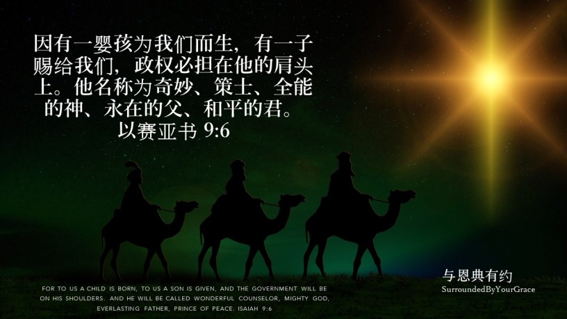 因有一婴孩为我们而生,有一子赐给我们,政权必担在他的肩头上。他名称为奇妙、策士、全能的神、永在的父、和平的君。以赛亚书 9:6