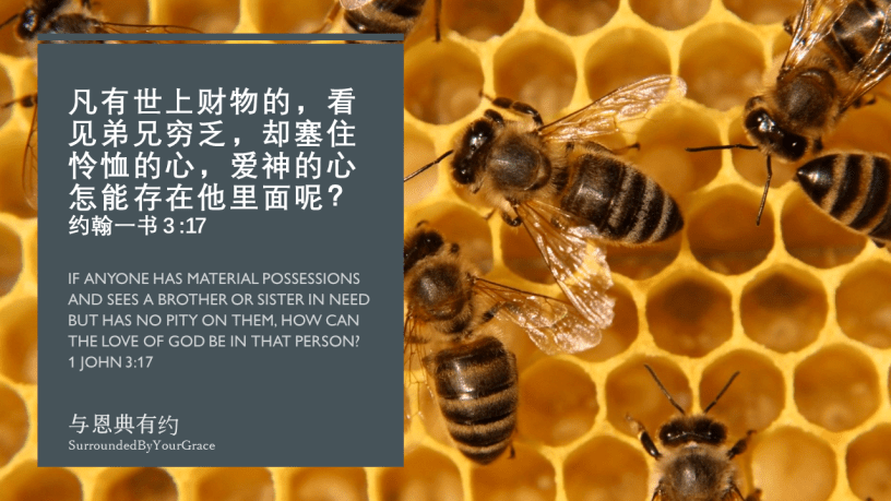 亲爱天父,祢教导我们要彼此相爱,求祢叫我们相爱不要只在言语和舌头上,也要在行为和诚实上,能叫有缺乏的得到帮助。感谢祢听我们的祈祷,祷告奉主耶稣基督胜名求,阿们。