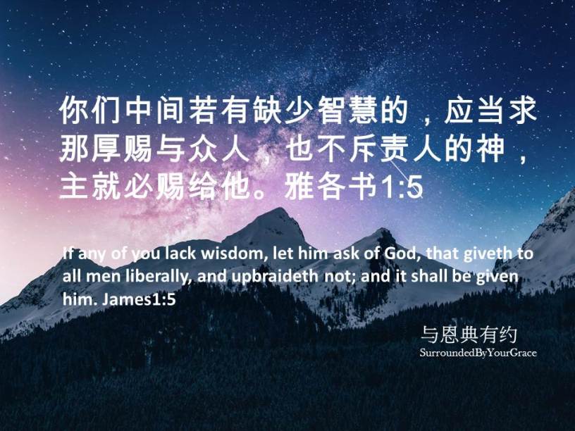 你们中间若有缺少智慧的,应当求那厚赐与众人,也不斥责人的神,主就必赐给他。雅各书1:5