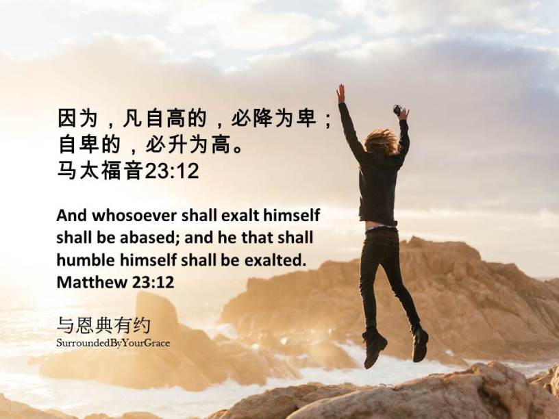 因为,凡自高的,必降为卑;自卑的,必升为高。马太福音23:12