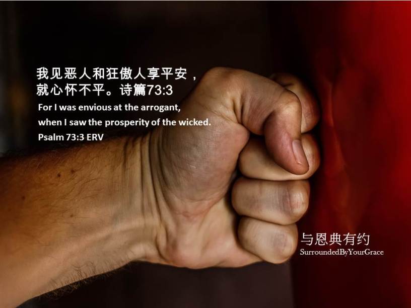 我见恶人和狂傲人享平安,就心怀不平。诗篇73:3