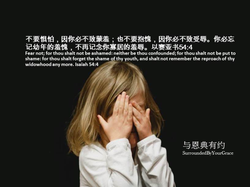 不要惧怕,因你必不致蒙羞;也不要抱愧,因你必不致受辱。你必忘记幼年的羞愧,不再记念你寡居的羞辱。以赛亚书54:4