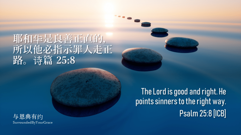 耶和华是良善正直的,所以他必指示罪人走正路。诗篇 25:8