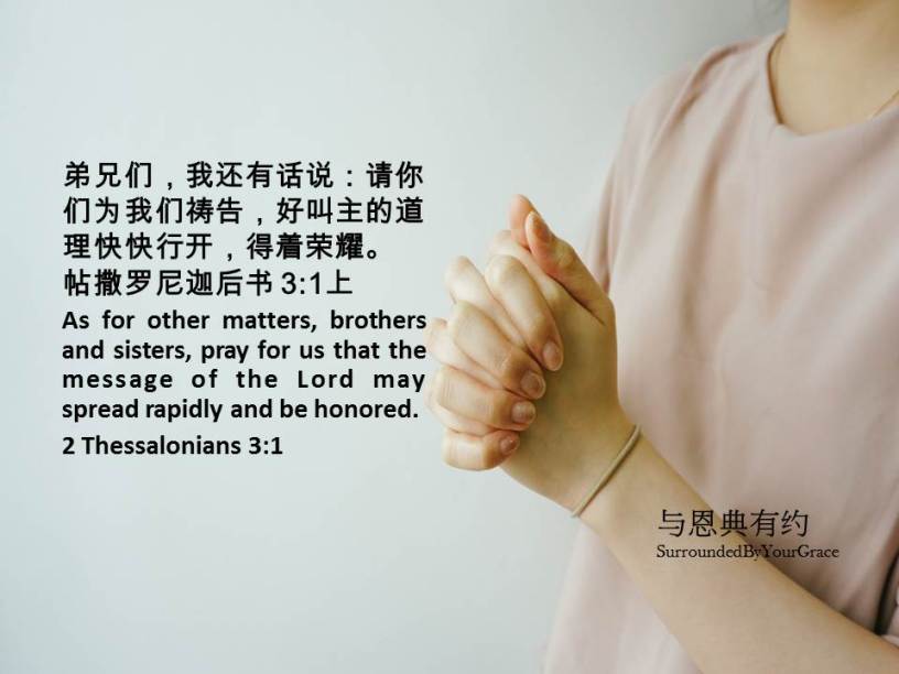 弟兄们,我还有话说:请你们为我们祷告,好叫主的道理快快行开,得着荣耀。帖撒罗尼迦后书 3:1上