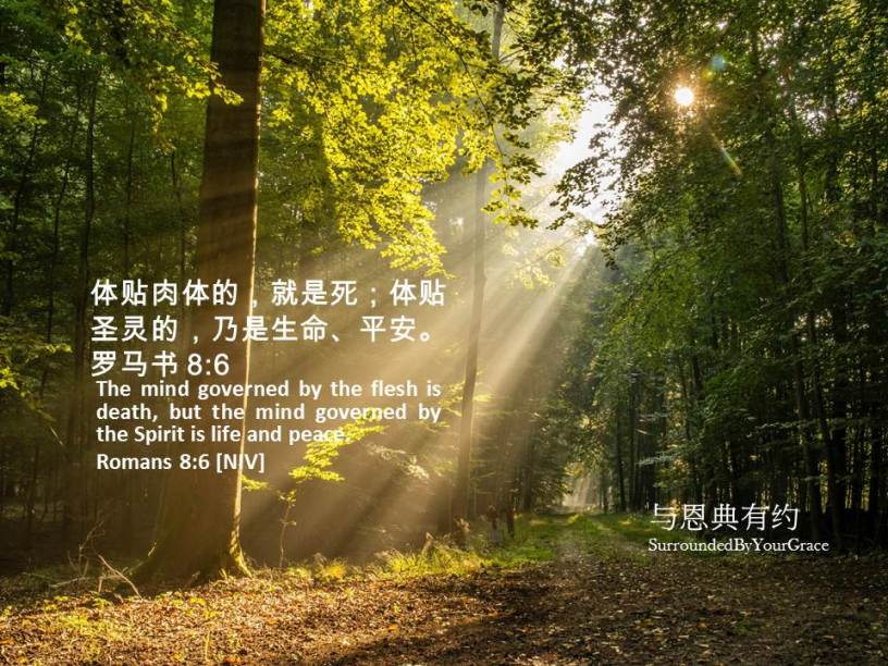 罗马书, 圣灵, 平安 罗马书 8:6 Date: 03/18/2023Author: tingfong123 体贴肉体的,就是死;体贴圣灵的,乃是生命、平安。罗马书 8:6 The mind governed by the flesh is death, but the mind governed by the Spirit is life and peace. Romans 8:6 [NIV] 亲爱天父,谢谢祢提醒我们,不要体贴肉体,因为体贴肉体只能引领我们到败坏那里去,但体贴圣灵却不同,体贴圣灵能引领我们到天父祢那里去,使我们得平安稳妥。感谢祢听我们的祈祷,祷告奉主耶稣基督圣名求,阿们。 Share this: Share on X (Opens in new window) X Share on Facebook (Opens in new window) Facebook Share on Pinterest (Opens in new window) Pinterest Share on WhatsApp (Opens in new window) WhatsApp Share on Telegram (Opens in new window) Telegram Like Loading... Related