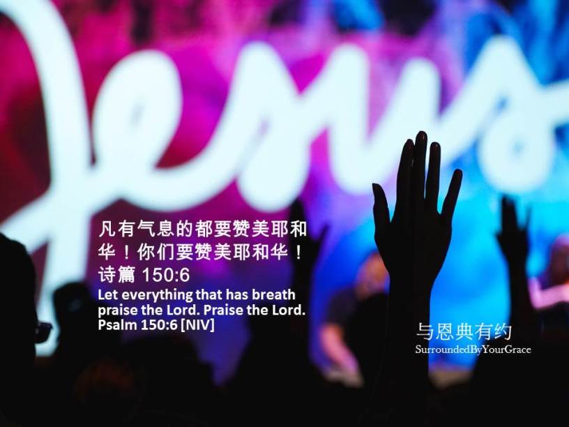 诗篇, 赞美 诗篇 150:6 Date: 04/01/2023Author: tingfong123 凡有气息的都要赞美耶和华!你们要赞美耶和华!诗篇 150:6 Let everything that has breath praise the Lord. Praise the Lord. Psalm 150:6 [NIV] 亲爱天父,祢是那创造天地的神,万物是因祢的旨意而做成的。主呀, 我们要赞美祢,赞美祢的伟大和慈爱,凡有血气的都要称颂祢的圣名!感谢祢听我们的祈祷,祷告奉主耶稣基督圣名求,阿们。 Share this: Share on X (Opens in new window) X Share on Facebook (Opens in new window) Facebook Share on Pinterest (Opens in new window) Pinterest Share on WhatsApp (Opens in new window) WhatsApp Share on Telegram (Opens in new window) Telegram Like Loading... Related
