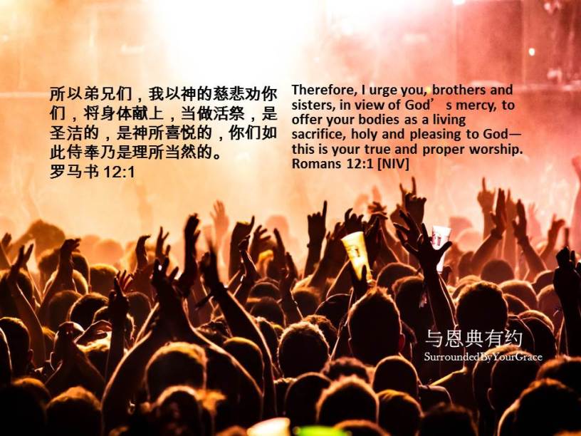 所以弟兄们,我以神的慈悲劝你们,将身体献上,当做活祭,是圣洁的,是神所喜悦的,你们如此侍奉乃是理所当然的。罗马书 12:1