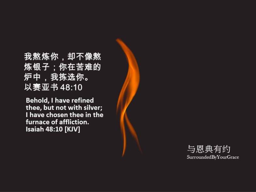 我熬炼你,却不像熬炼银子;你在苦难的炉中,我拣选你。以赛亚书 48:10