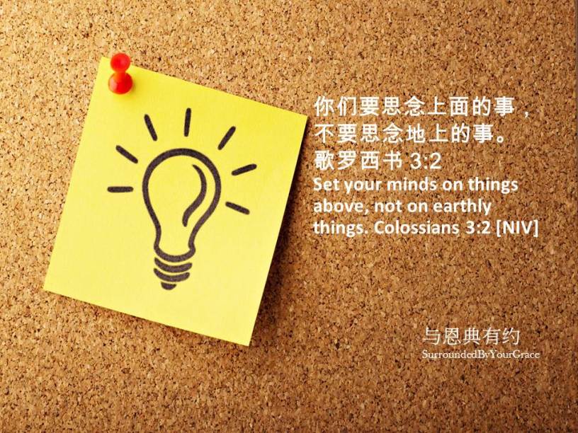 你们要思念上面的事,不要思念地上的事。歌罗西书 3:2